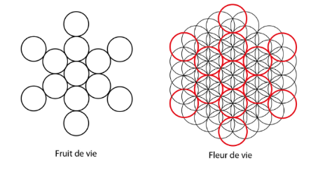 Le fruit de vie symbolise la source énergétique et nourricière de la fleur de vie. Il est représenté par 13 cercles disposés en forme d’étoile. Son apparence peut évoquer l’organisation des atomes dans certaines structures cristallines. Il incarne l’abondance et la multiplication de la vie.