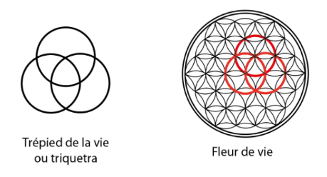 Le triquetra, aussi appelé le trépied de la vie, est une évolution du vesica piscis, à laquelle on ajoute un troisième cercle.